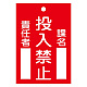 スイッチ関係標識 命札 120×80×2mm 表記:投入禁止 (085100)
