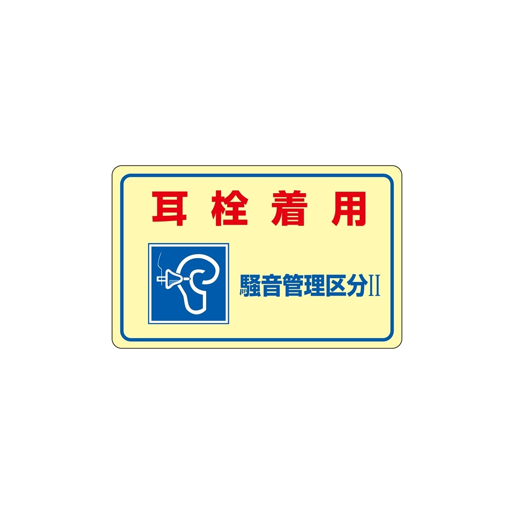 - 騒音管理標識板 ステッカー 150×240mm 5枚1組 表記:耳栓着用 騒音管理区分2 (030025)