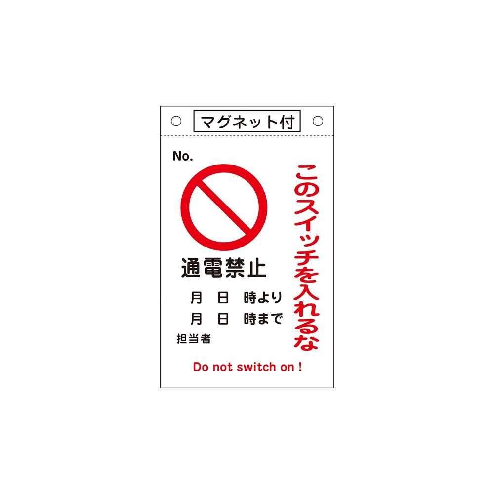 スイッチ関係標識 このスイッチを入れるな 260×160×0.6mm 表記:通電禁止 (085520)