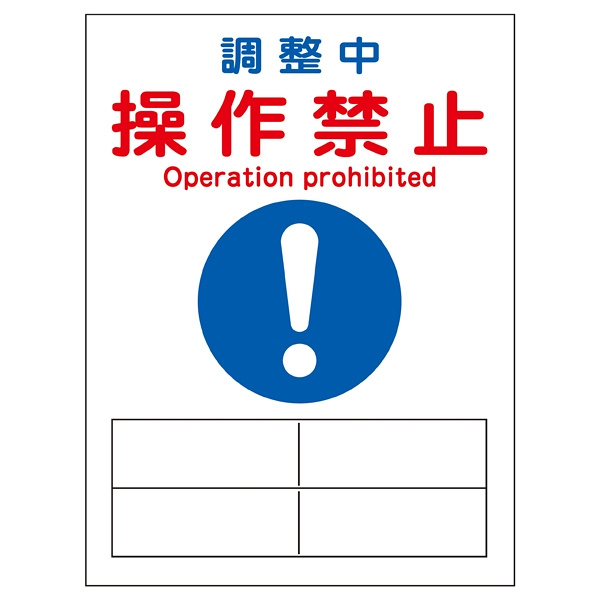 マグネプレート 200×150×0.8mm 表記:調整中 操作禁止 (086128)
