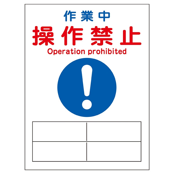 マグネプレート 200×150×0.8mm 表記:作業中 操作禁止 (086132)