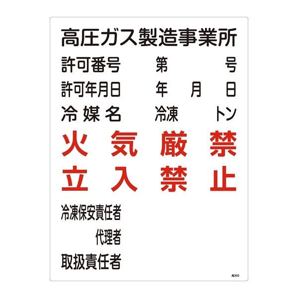 - LP高圧ガス関係標識板 高圧ガス標識 600×450 表示:高圧ガス製造事業所 (039302)