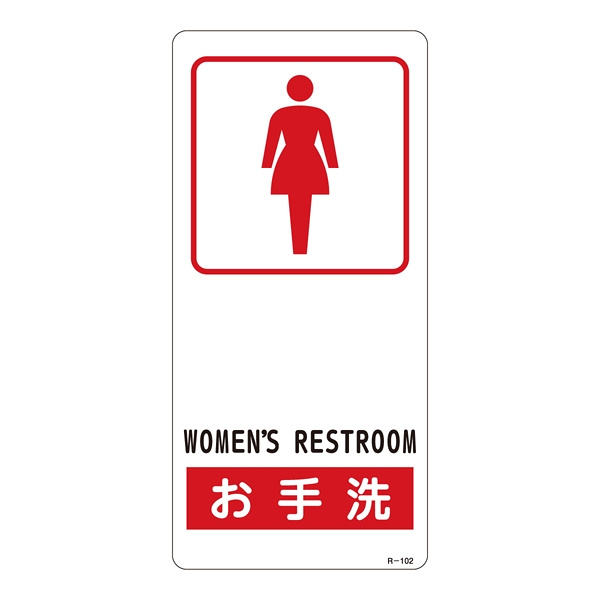 - サイン標識 裏面接着テープ付 190×90×0.5mm 表記:お手洗(女性用) (356102)