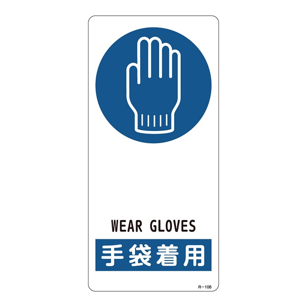 サイン標識 裏面接着テープ付 190×90×0.5mm 表記:手袋着用 (356106)