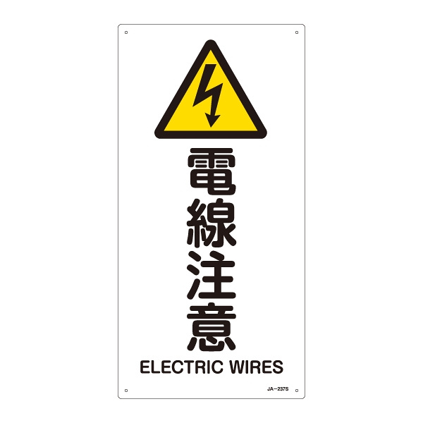 JIS安全標識 (警告) 電線注意 サイズ: (S) 450×225 (393237)