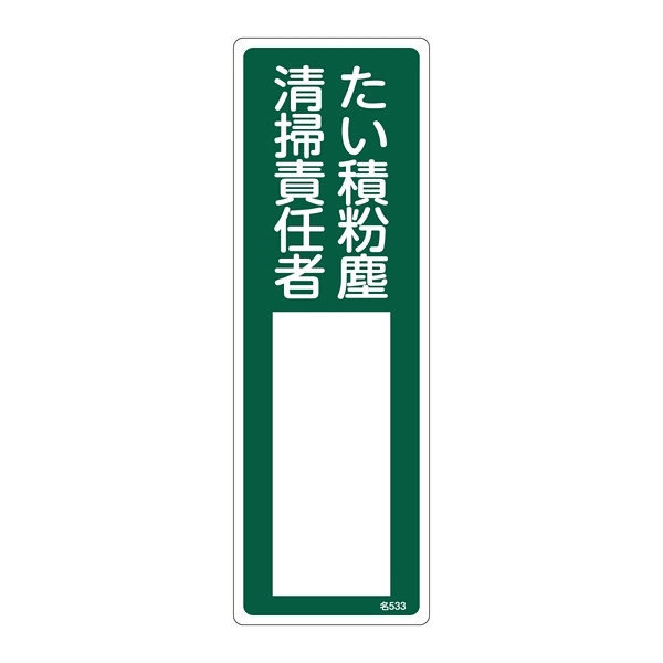 - 氏名標識 (樹脂タイプ) 300×100×1mm 表記:たい積粉塵 清掃責任者 (046533)