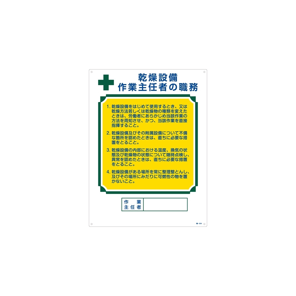- 作業主任者の職務標識 600×450×1mm 表記:乾燥設備 作業主任者の職務 (049504)