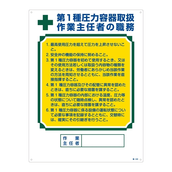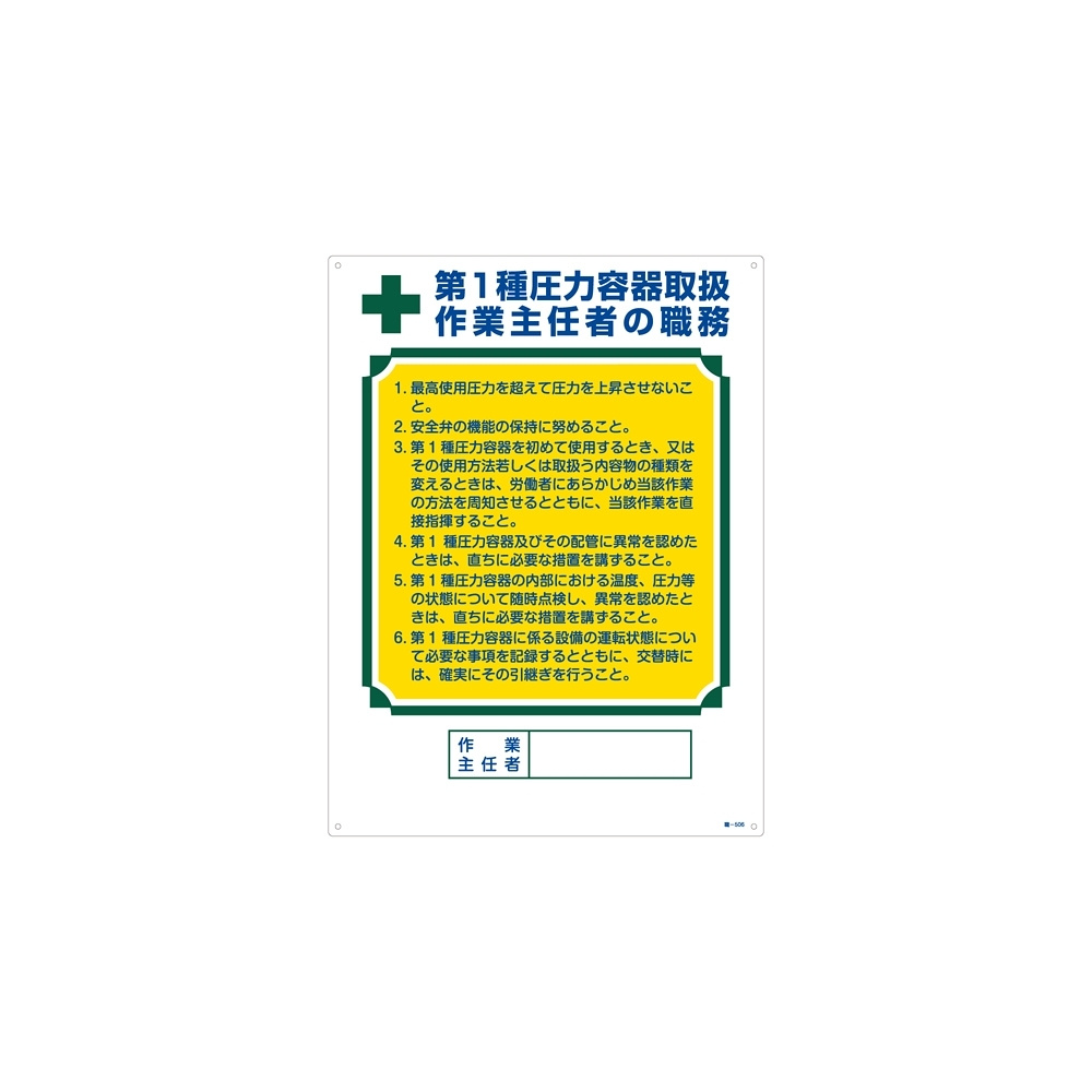 - 作業主任者の職務標識 600×450×1mm 表記:第1種圧力容器取扱・・ (049506)