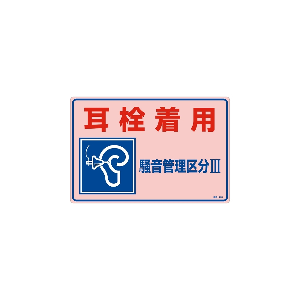騒音管理標識板 エンビ板 300×450×1mm 表記:耳栓着用 騒音管理区分3 (030203)