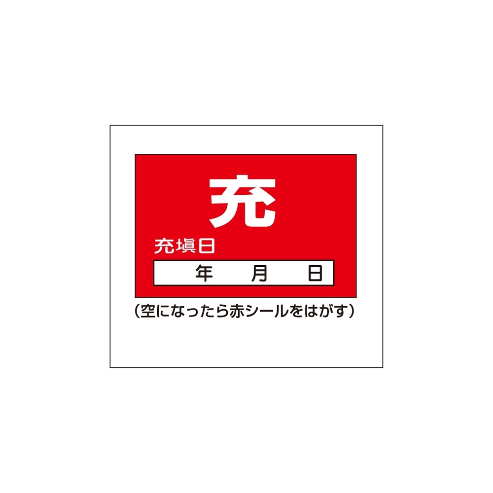 ボンベが空になったら「充」のシールをはがしてください。下から「空」の文字が出てきます。社名印刷のオーダーも承ります。