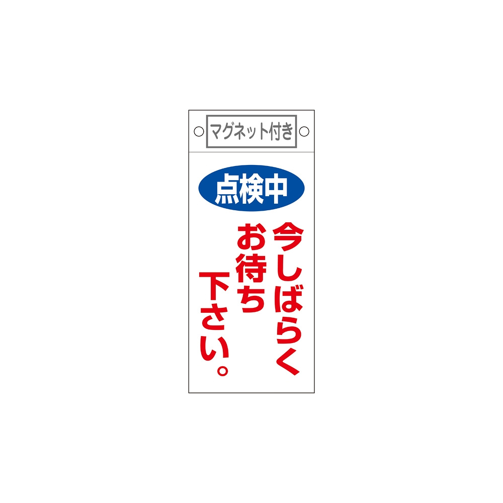 スイッチ関係標識 マグネット付 225×100×0.6mm 表記:点検中 今しばらくお待ち下さい。 (085402)