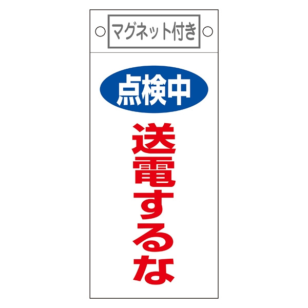 スイッチ関係標識 マグネット付 225×100×0.6mm 表記:点検中 送電するな (085413)