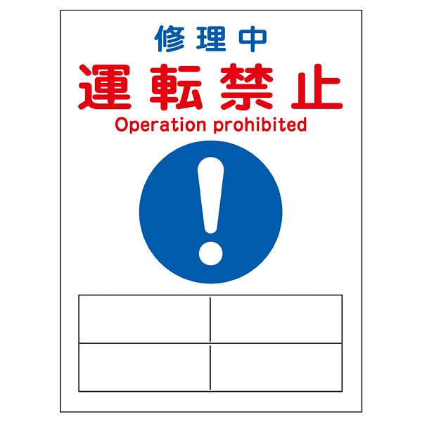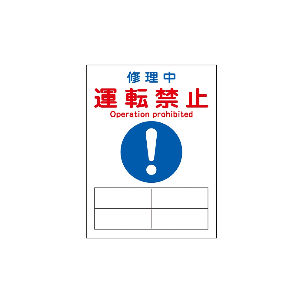 マグネプレート 200×150×0.8mm 表記:修理中 運転禁止 (086119)