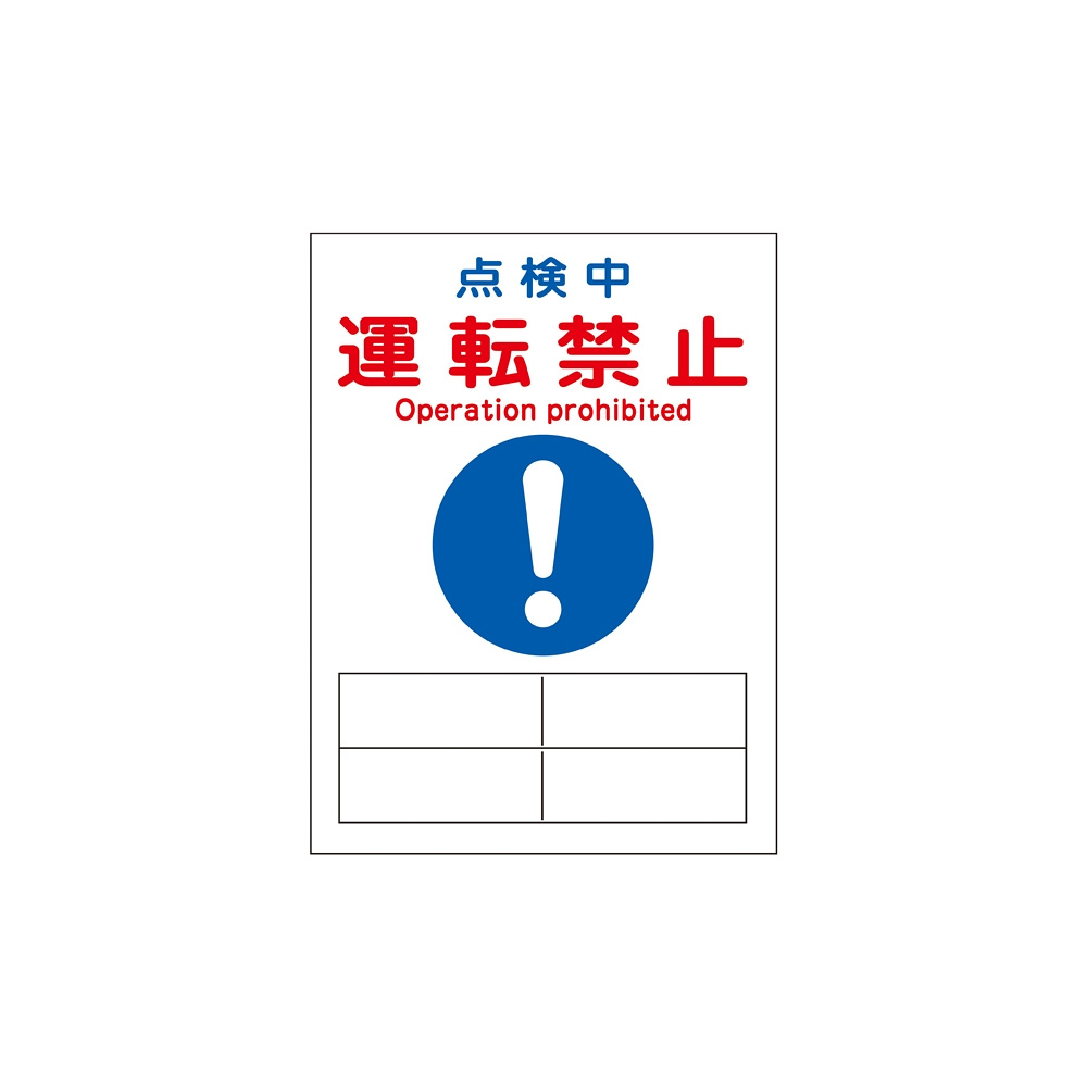 マグネプレート 200×150×0.8mm 表記:点検中 運転禁止 (086120)