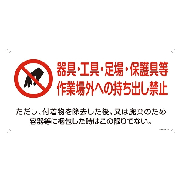 - 保護具等について、付着した石綿を除去した後でなければ、作業場外に持ち出してはなりません。 注.表示義務はありません。