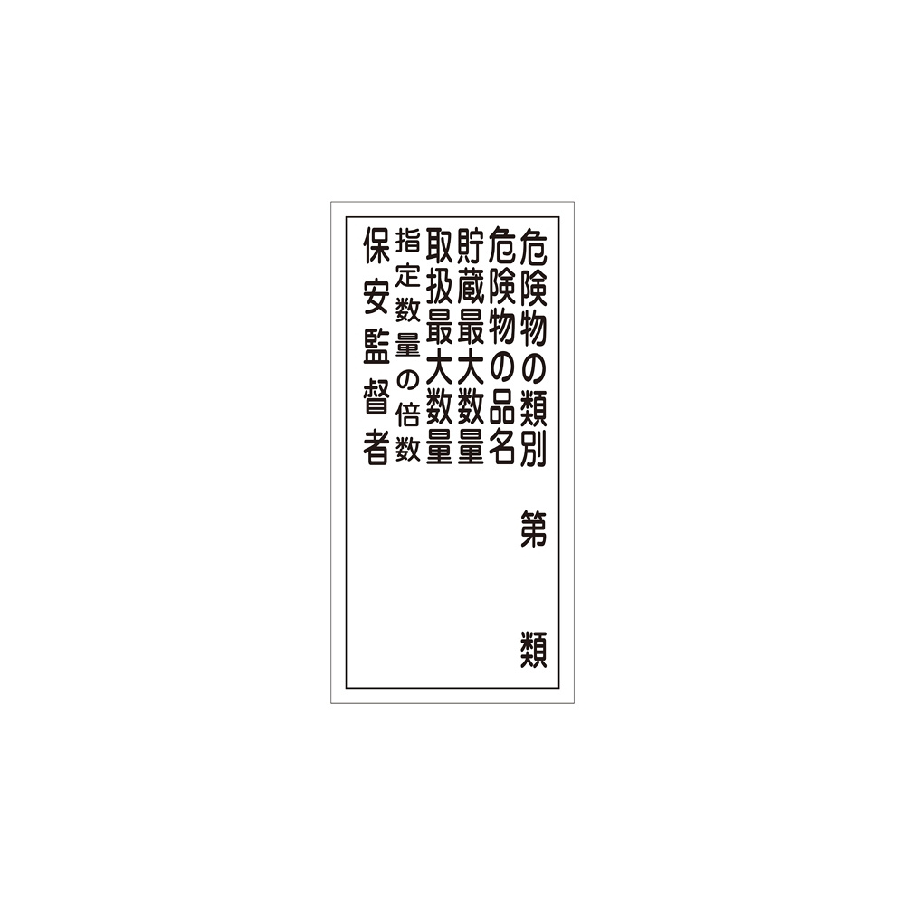 危険物標識 硬質エンビ 縦書き 600×300×1mm 表示:危険物の類別第○類 (052016)