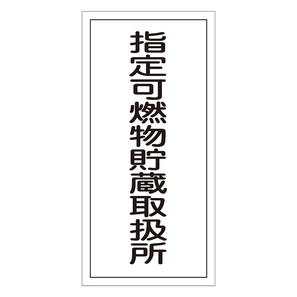 危険物標識 硬質エンビ 縦書き 600×300×1mm 表示:指定可燃物貯蔵取扱所 (052030)
