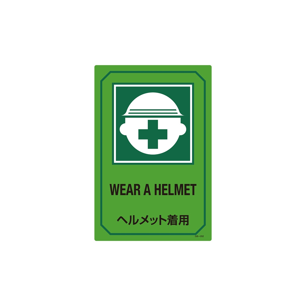 英文字入りサイン標識 450×300×1mm 表記:ヘルメット着用 (095202)