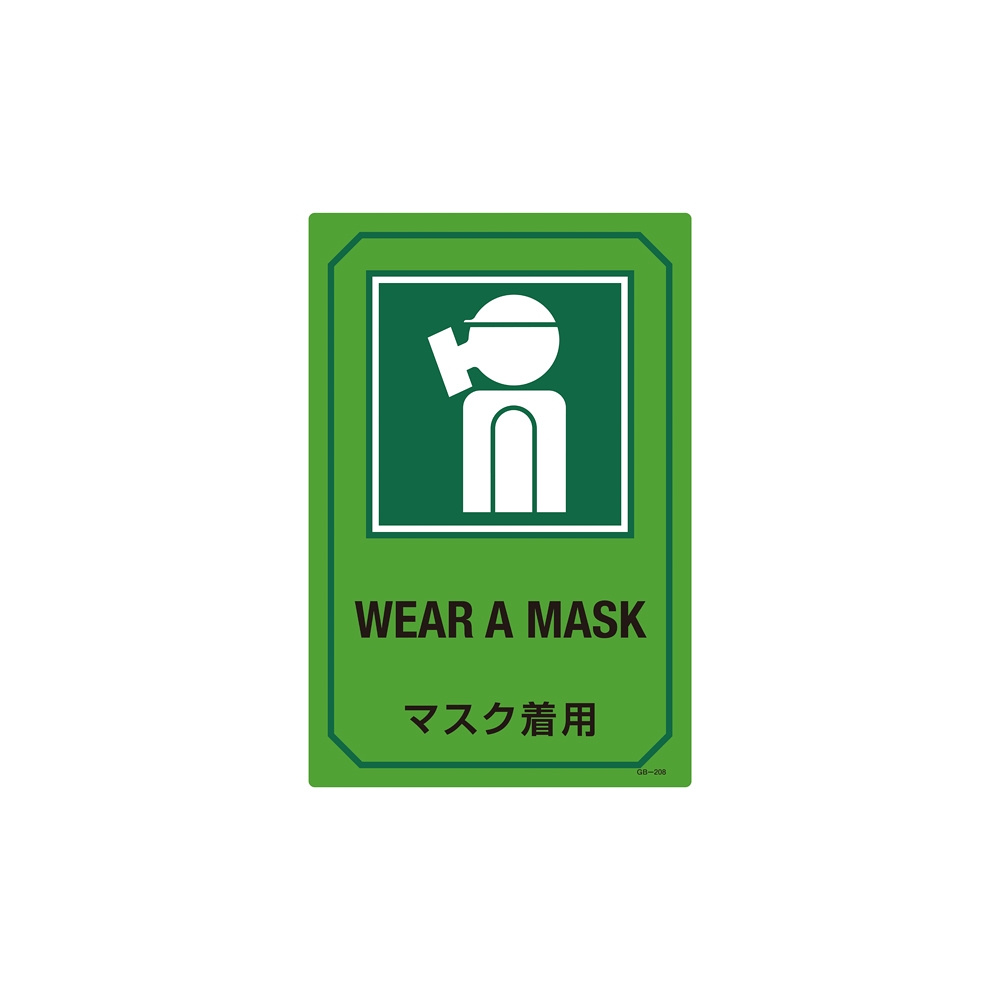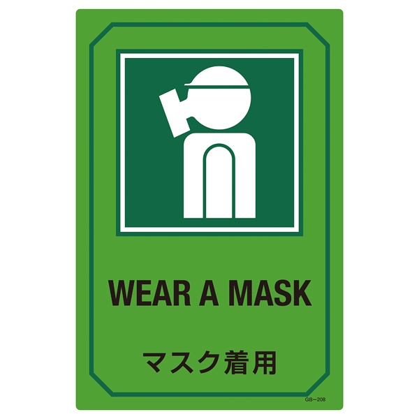 英文字入りサイン標識 450×300×1mm 表記:マスク着用 (095208)