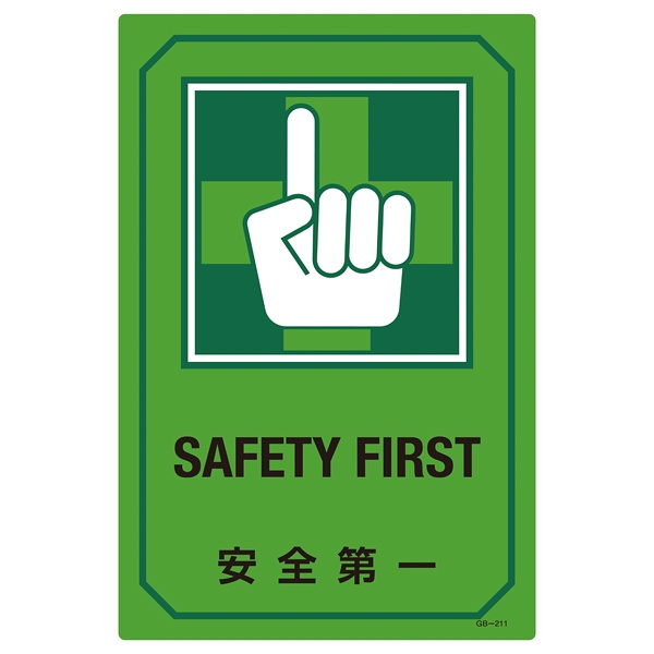 英文字入りサイン標識 450×300×1mm 表記:安全第一 (095211)