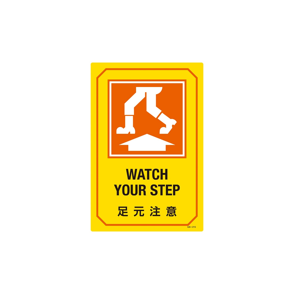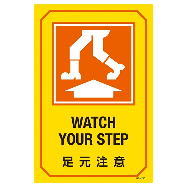 英文字入りサイン標識 450×300×1mm 表記:足元注意 (095215)