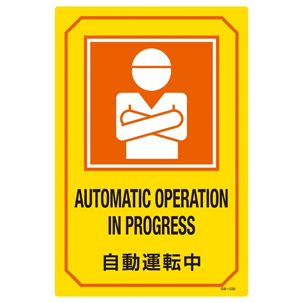 英文字入りサイン標識 450×300×1mm 表記:自動運転中 (095220)