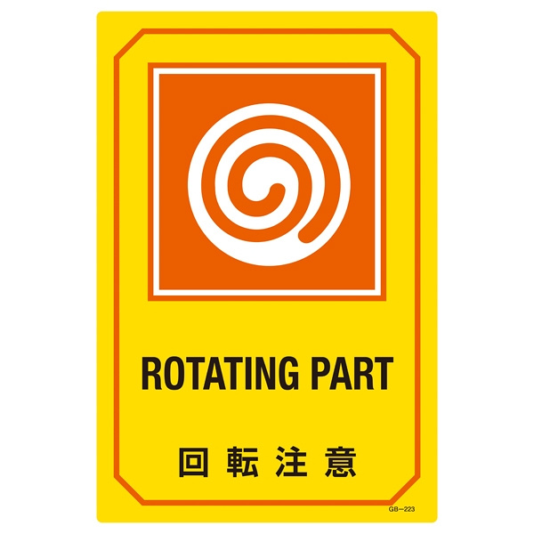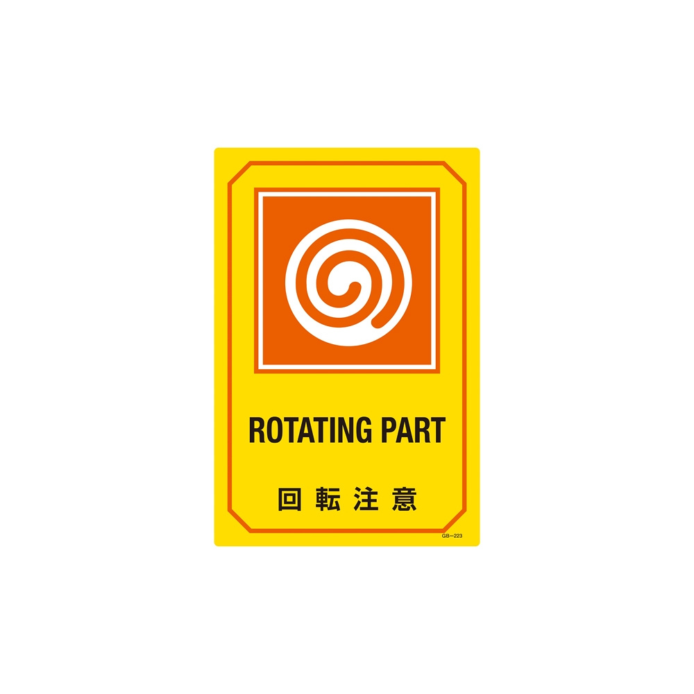 英文字入りサイン標識 450×300×1mm 表記:回転注意 (095223)