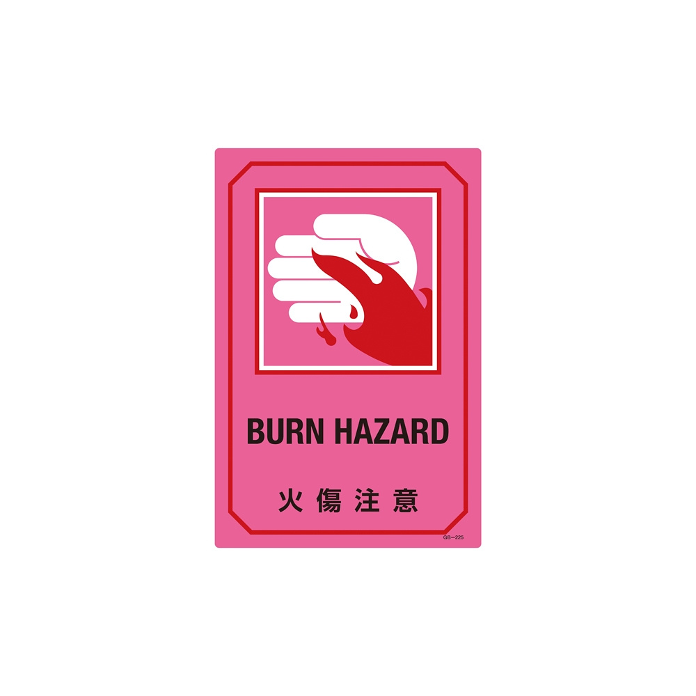 英文字入りサイン標識 450×300×1mm 表記:火傷注意 (095225)