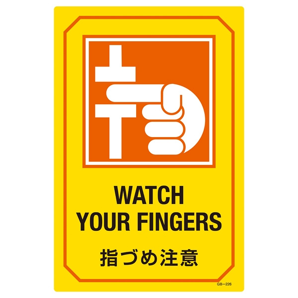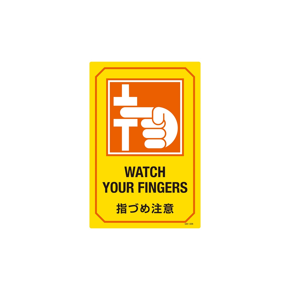 英文字入りサイン標識 450×300×1mm 表記:指づめ注意 (095226)