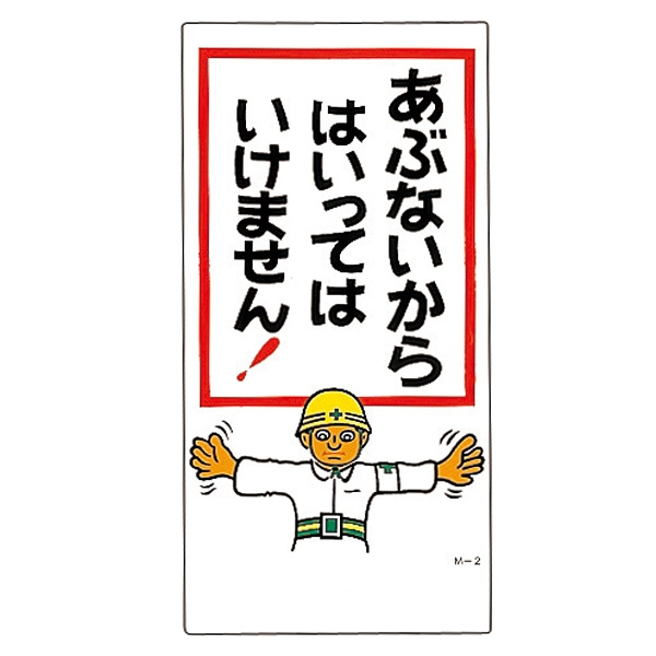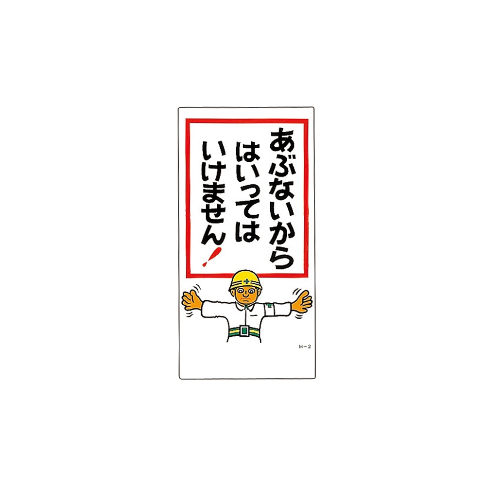 建設向けイラスト標識 600×300×1mm 表記:あぶないから はいっては・・ (098002)