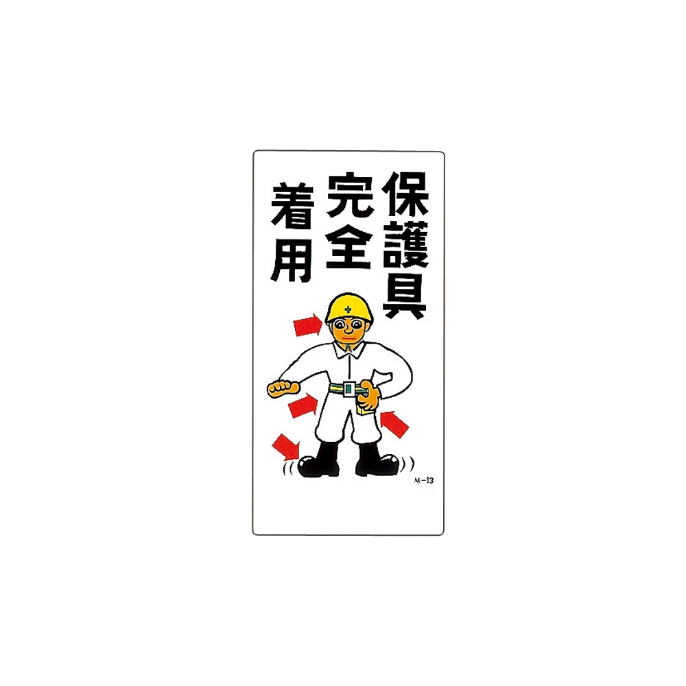 建設向けイラスト標識 600×300×1mm 表記:保護具完全着用 (098013)