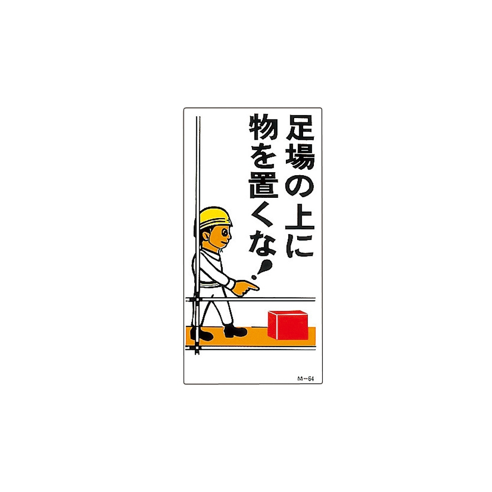 建設向けイラスト標識 600×300×1mm 表記:足場の上に物を置くな! (098064)