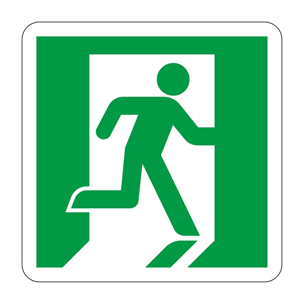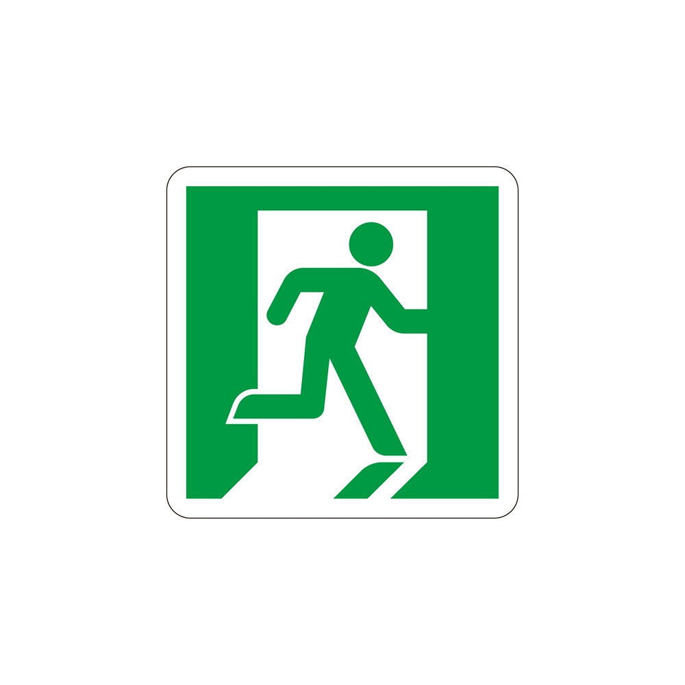 高輝度蓄光50mm幅テープ用補助ステッカー (壁面用) 5枚入 仕様:非常口右向き・45mm角 (378002)