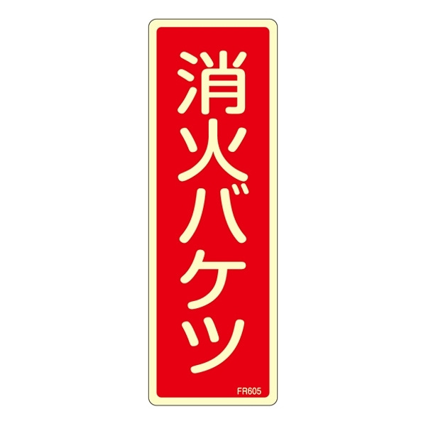 - 消防標識板 避難器具標識 (蓄光タイプ) 縦書き 240×80×1mm 表示:消火バケツ (066605)