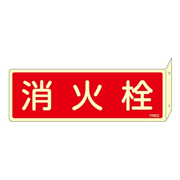 - 消防標識板 消火器具標識 (蓄光タイプ) 両面表示突出しタイプ 横書き 80×240×1mm・曲げしろ30mm 表示:消火栓 (066802)