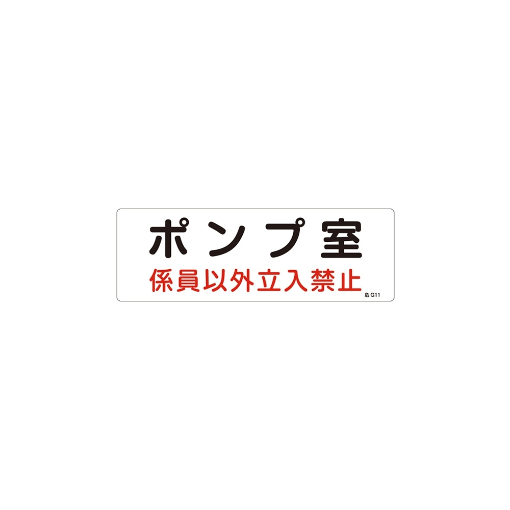 消防標識板 危険地域室標識 100×300×1mm 係員以外立入禁止 表示:ポンプ室 (060011)