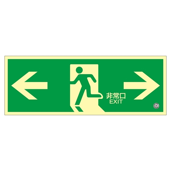 - 避難誘導標識 中輝度蓄光式避難口標識 (認定証票付) 非常口 120×360×1.2mm 表示:左右矢印 (068804)