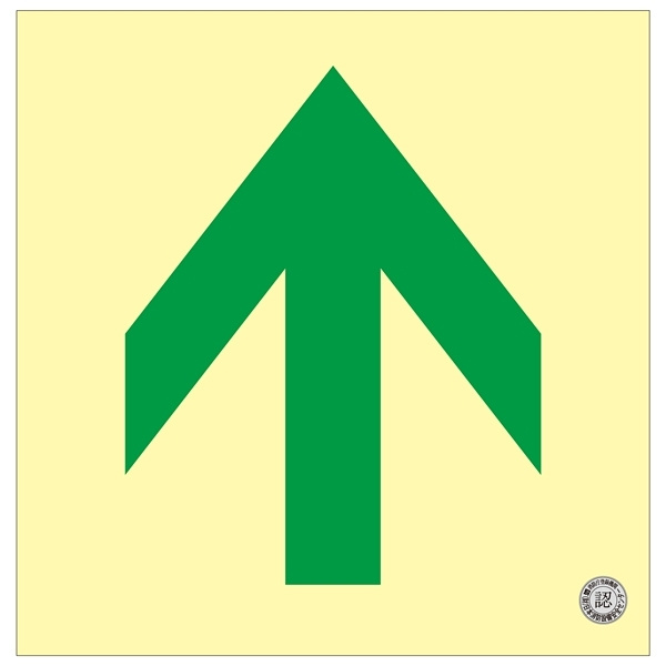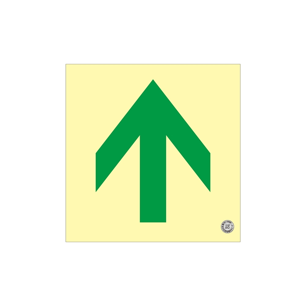 - 避難誘導標識 中輝度蓄光式床用誘導標識 (認定証票付) 非常口 300mm角 表示:矢印のみ 黄地 (070016)