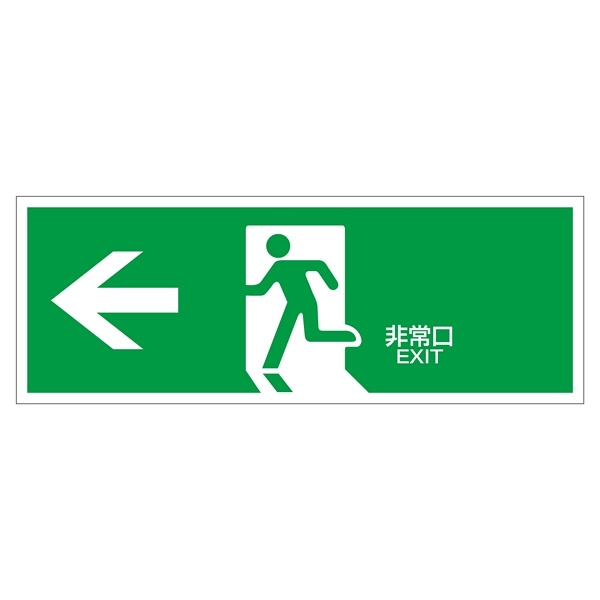 - 避難誘導標識 非常口 120×360×1mm 表示:左矢印 緑地 (065306)