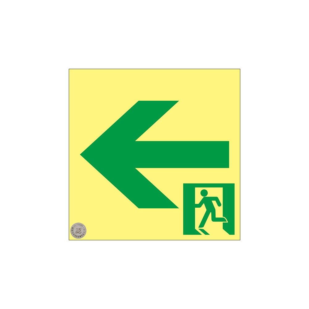 - 高輝度蓄光通路誘導標識 (認定証票付) 非常口 150mm角 表示:左矢印 (364952)