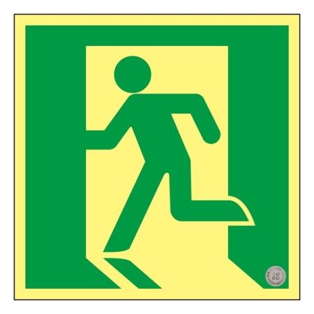 高輝度蓄光避難口誘導標識 (認定証票付) PETステッカー 非常口 サイズ:200mm角 (377815)