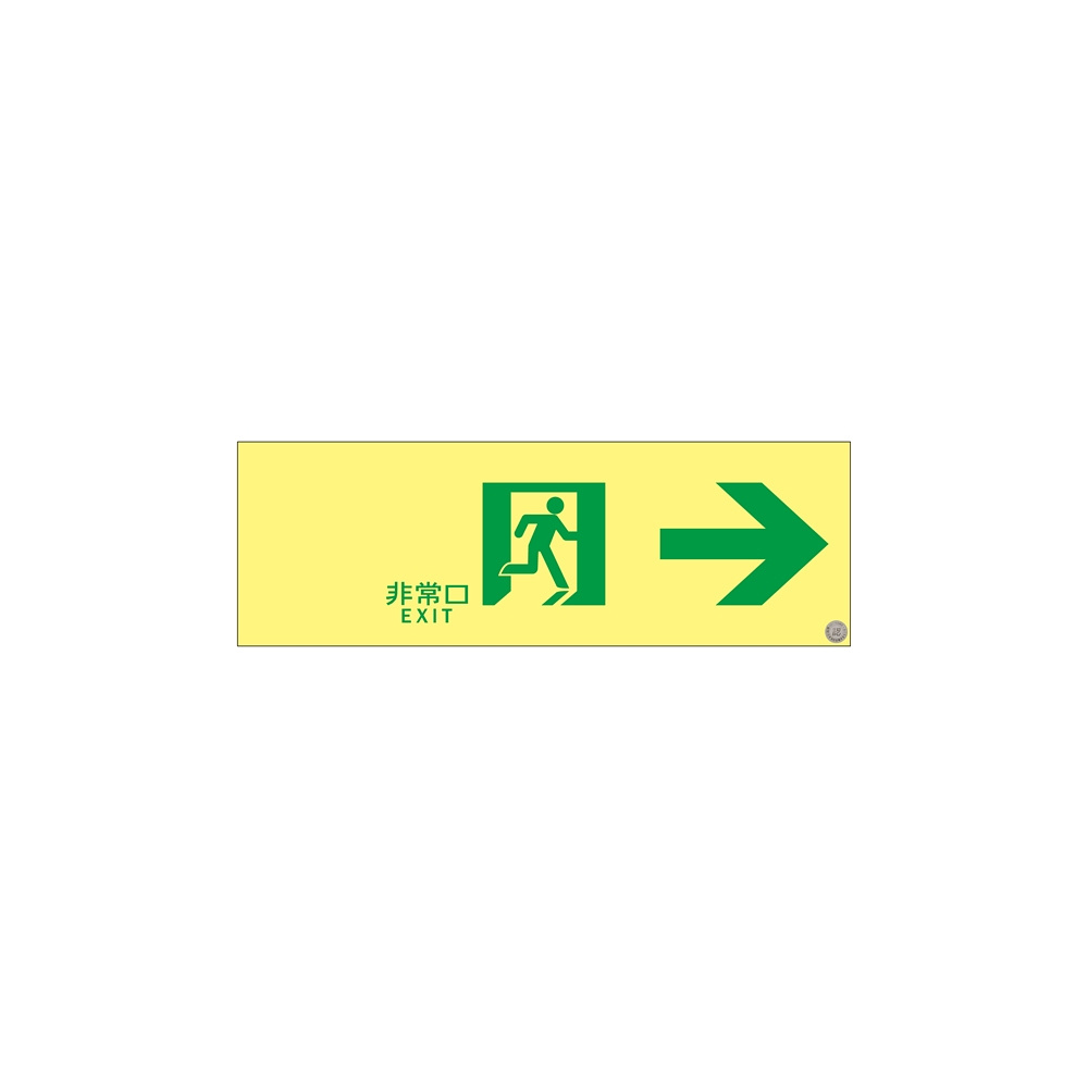高輝度蓄光通路誘導標識 (認定証票付) PETステッカー 非常口 100×300mm 表示:右矢印 ASN901 (377901)