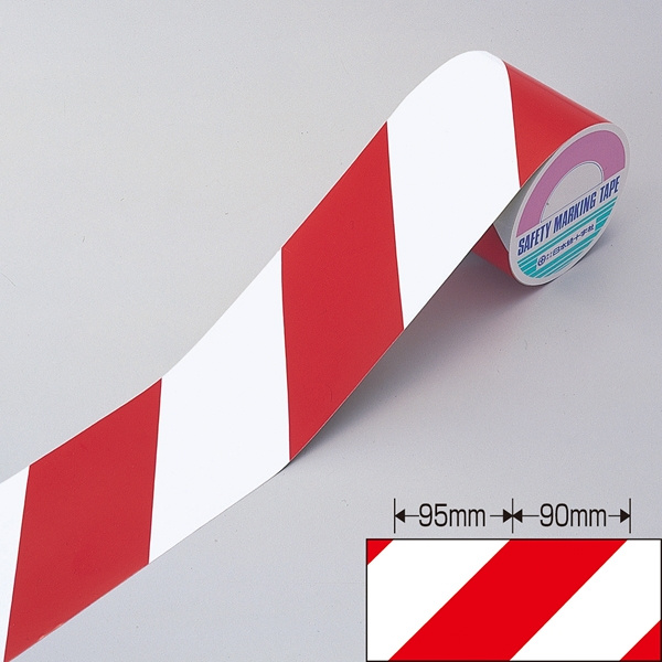 反射トラテープ 赤/白 サイズ:90mm幅×10m×0.15mm (256309)