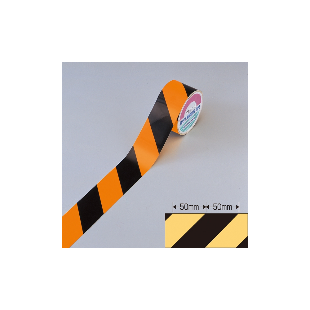 蛍光トラテープ オレンジ/黒 サイズ:45mm幅×10m×0.2mm (256402)