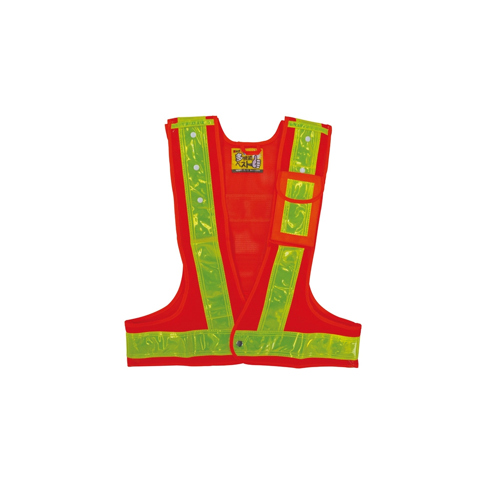 縦510 ~590×横520 ~650mmの調節が可能 マジックテープとホック(肩部)による調節・反射帯60mm幅 ※万能ポケット付き(左胸外部1箇所・腰内部3箇所)
