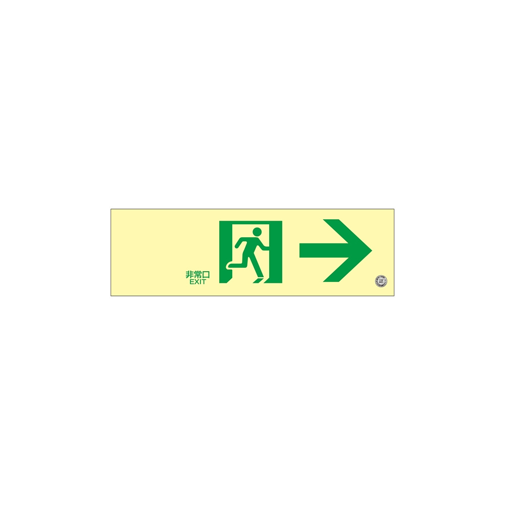 高輝度蓄光通路誘導標識 (認定証票付) PETステッカー 非常口 100×300mm 表示:右矢印 蓄光-2901 (360901)