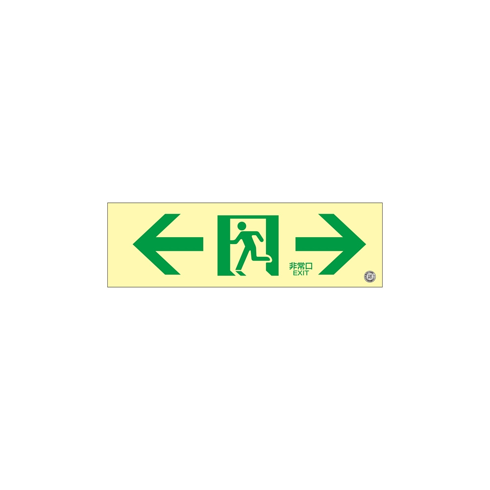 高輝度蓄光通路誘導標識 (認定証票付) PETステッカー 非常口 100×300mm 表示:左右矢印 蓄光-2903 (360903)