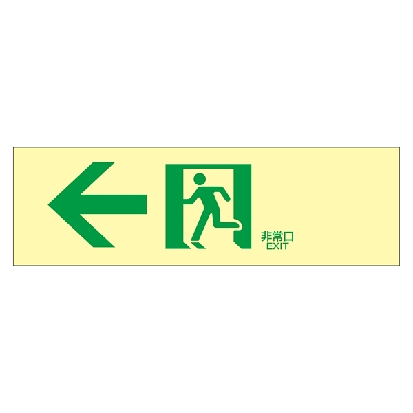 高輝度蓄光通路誘導標識 PETステッカー 非常口 100×300mm 表示:左矢印 蓄光LE-1902 (071902)