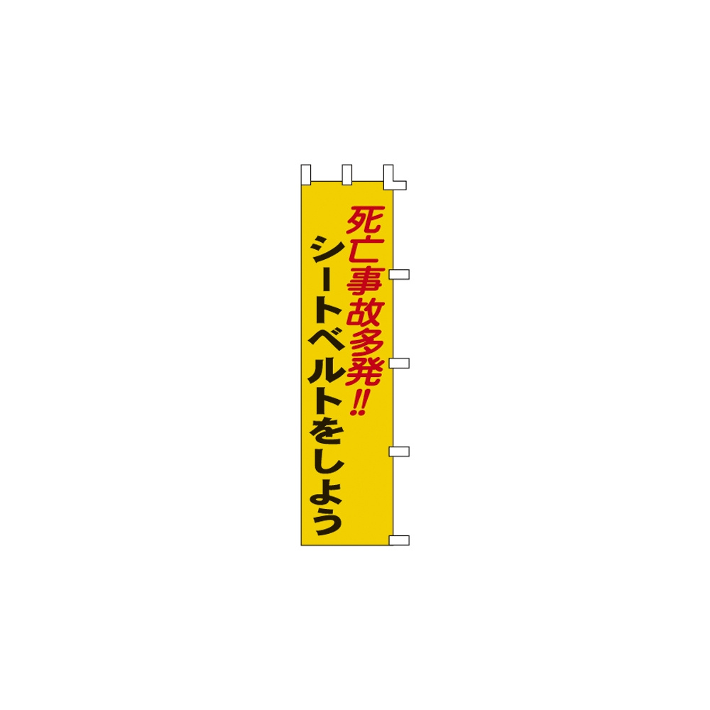 のぼり旗 1500×450mm 表記:死亡事故多発!! シートベルトをしよう (255007)