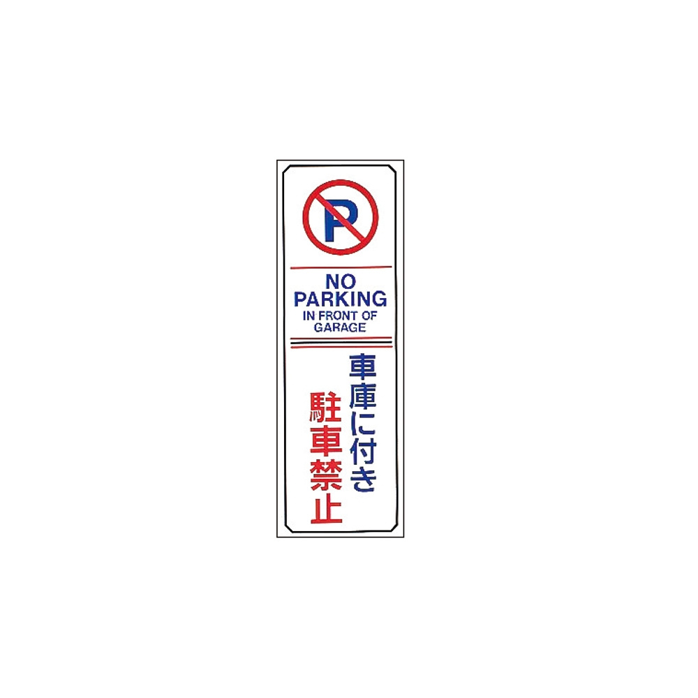 駐車禁止標識 360×120×2mm (無反射タイプ) 表記:車庫に付き駐車禁止 (107016)